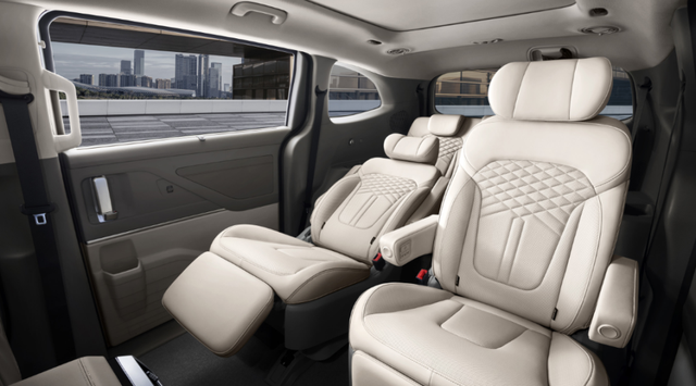 重点得说说第二排,这才是MPV的灵魂所在。3055mm的轴距真不是白给的,我把驾驶座调成自己习惯的位置后,第二排还能跷二郎腿。两个独立座椅跟头等舱似的,扶手、腿托、遮阳帘一应俱全,座椅加热通风也没缺席。
